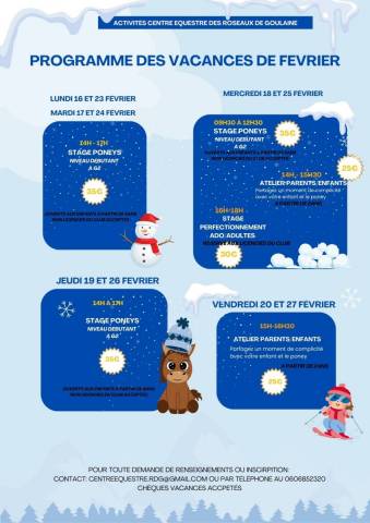 Le centre équestre vous propose des cours pour les enfants, les adultes et personnes en situation de handicap de tous les niveaux, des balades, des stages et accueille des chevaux en pension pré.